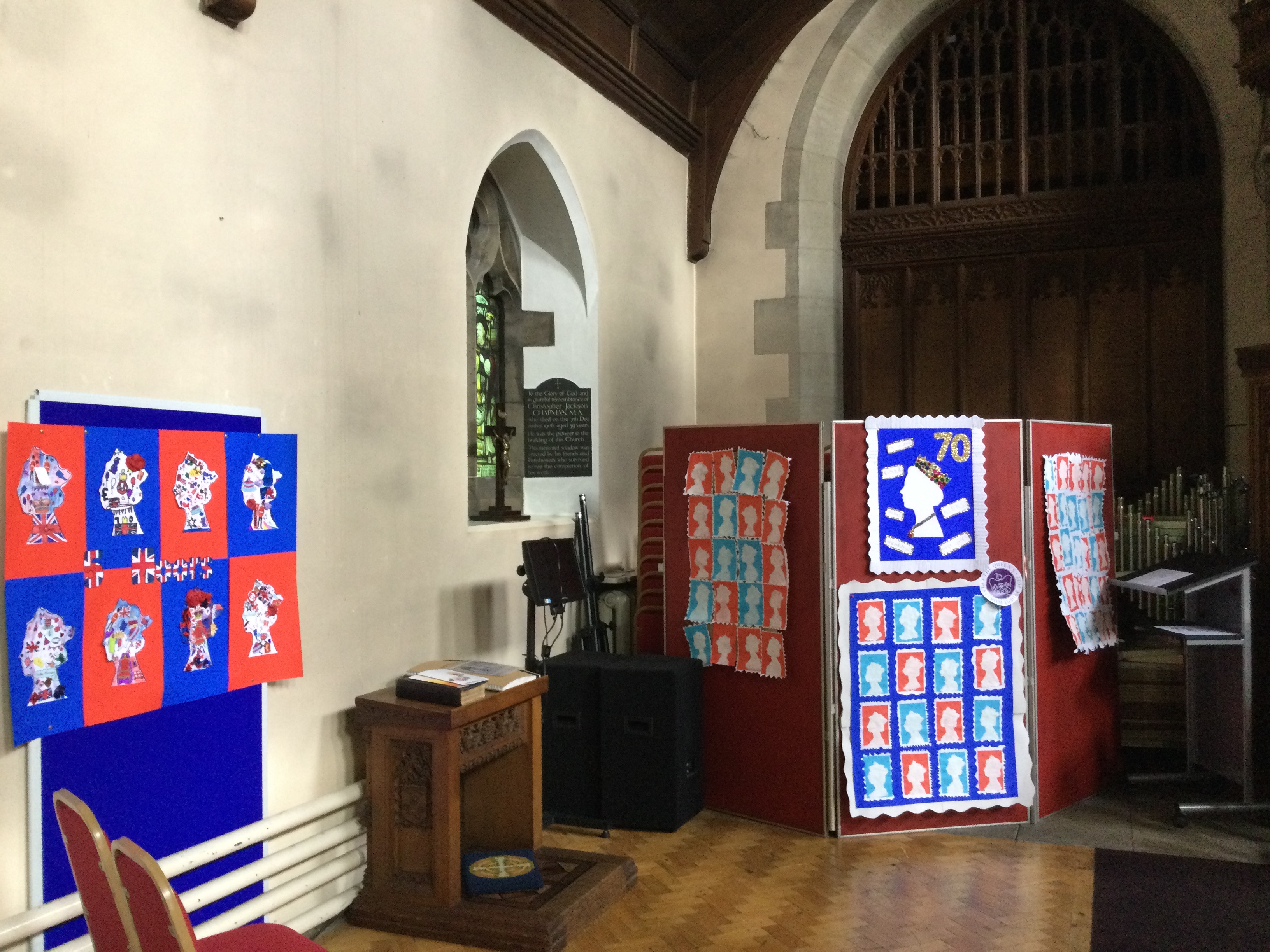 Here are photos of the children's work displayed in church for the Jubilee Songs of Praise (singing the Queen's favourite hymns) on Thursday 2nd. The display really lifted the appearance of the church and delighted the congregation for this traditional service.