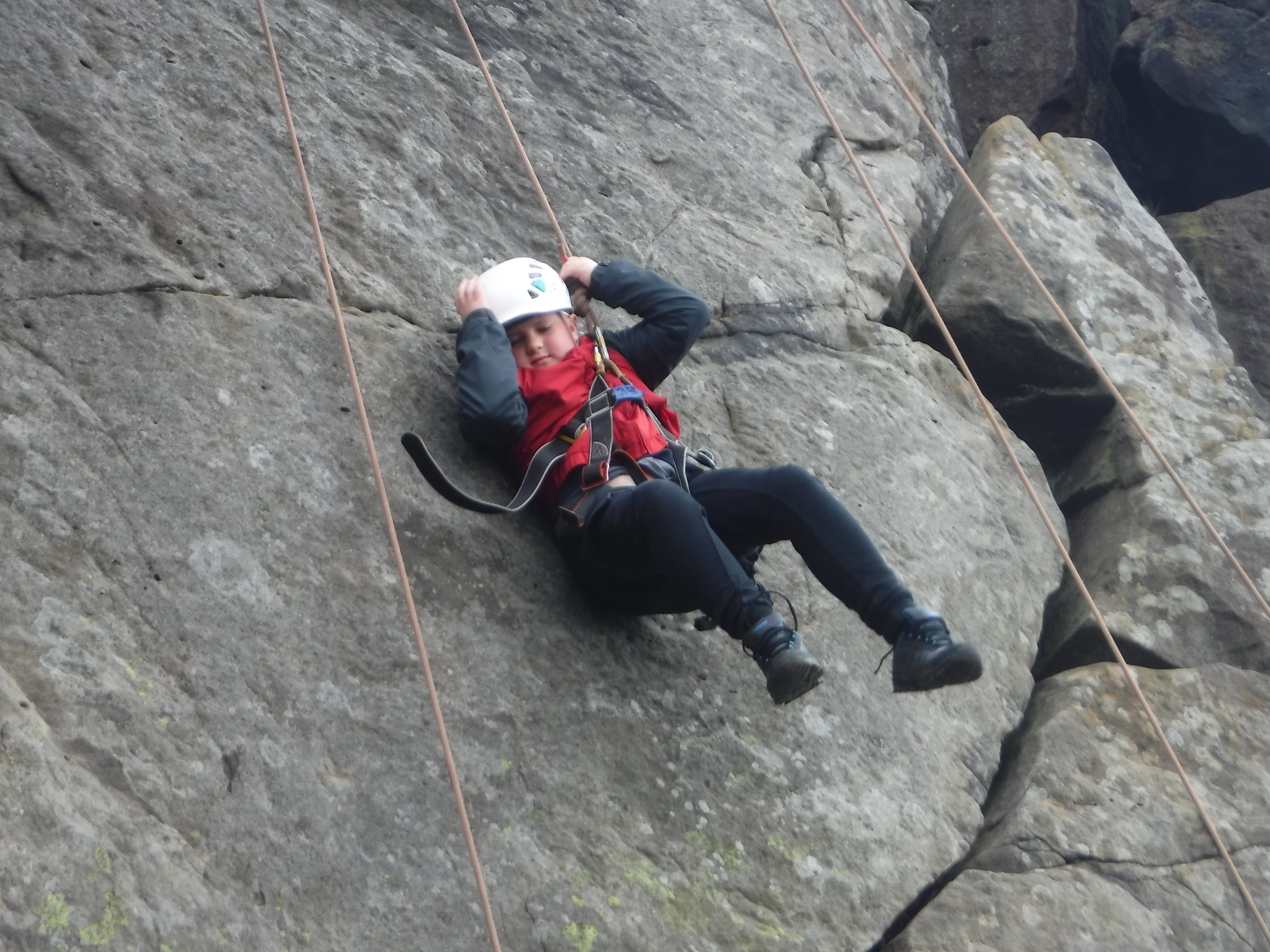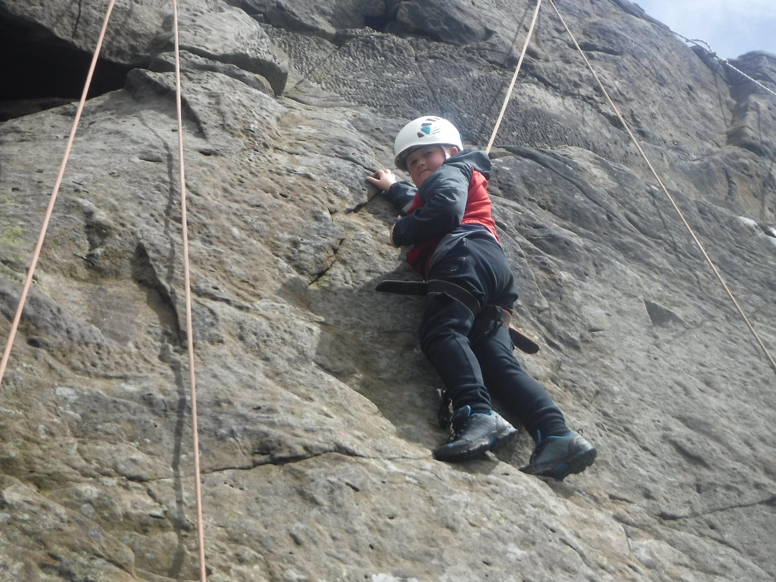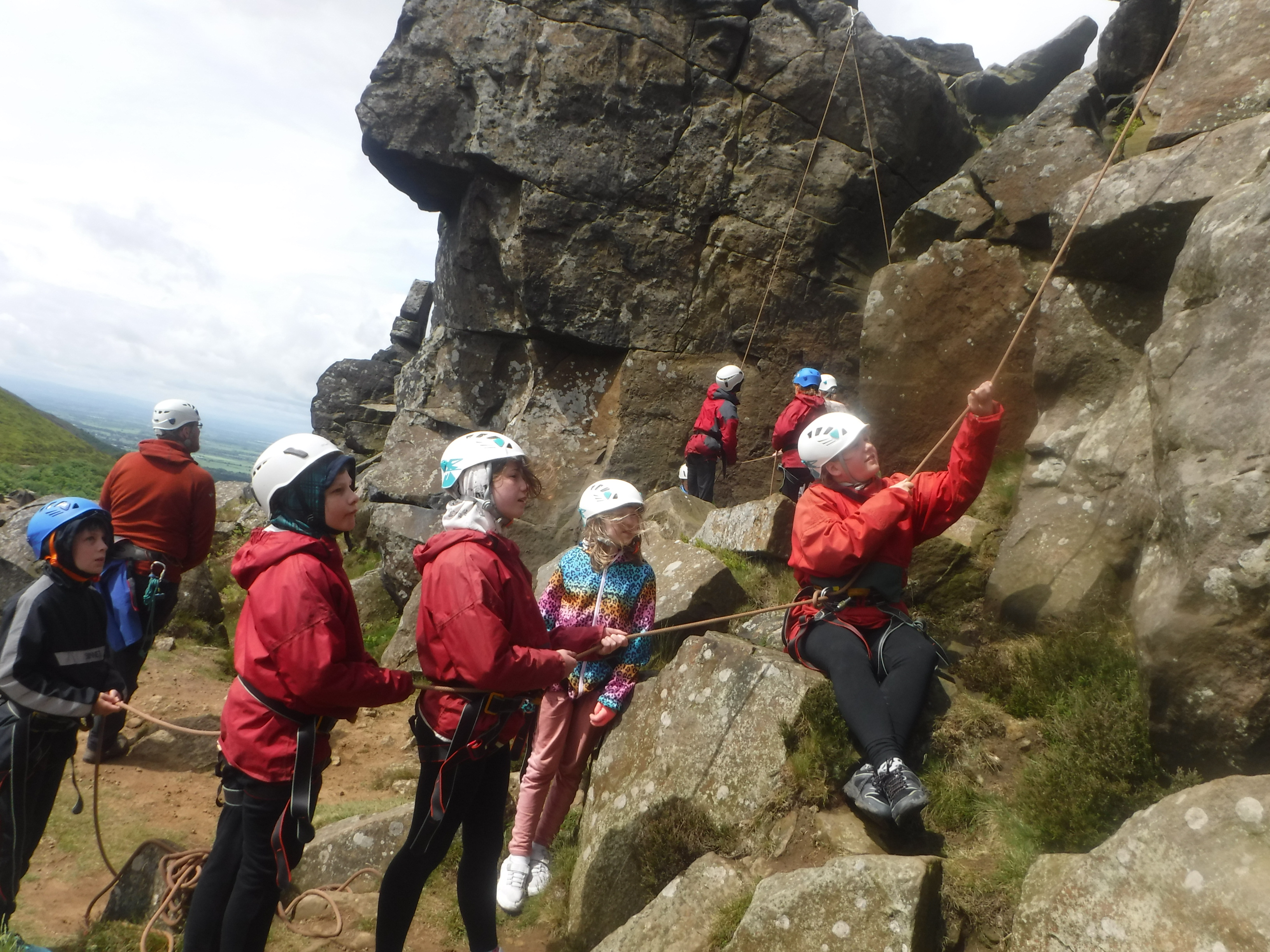 The groups who went for a full day of climbing first had a strenuous walk from their minibuses to the crags and then a scrambling session to warm up. After a picnic dinner, the top ropes were made ready and the brave and the bold made their attempts to scale the rock. So many achieved much more than they thought was possible.