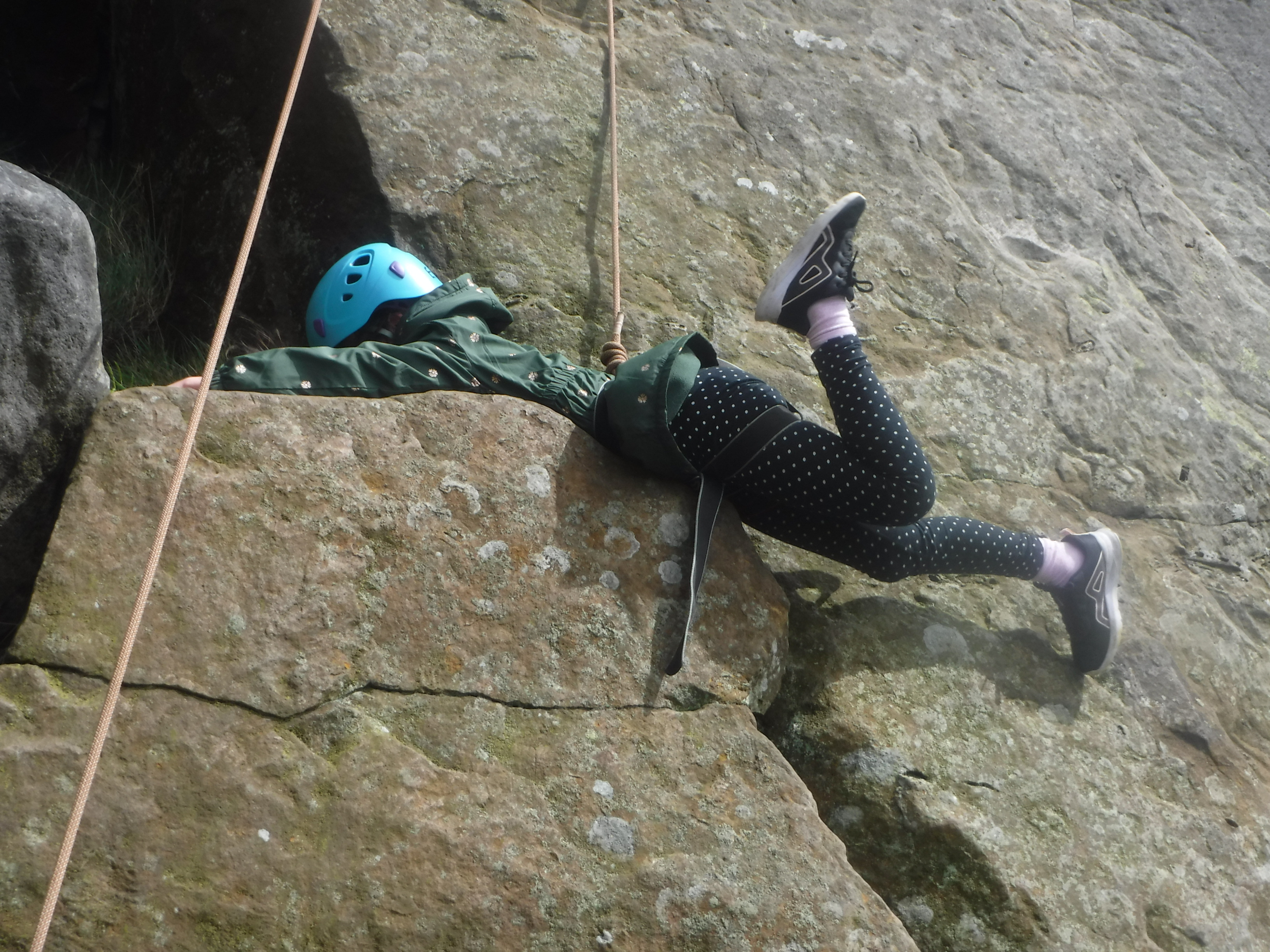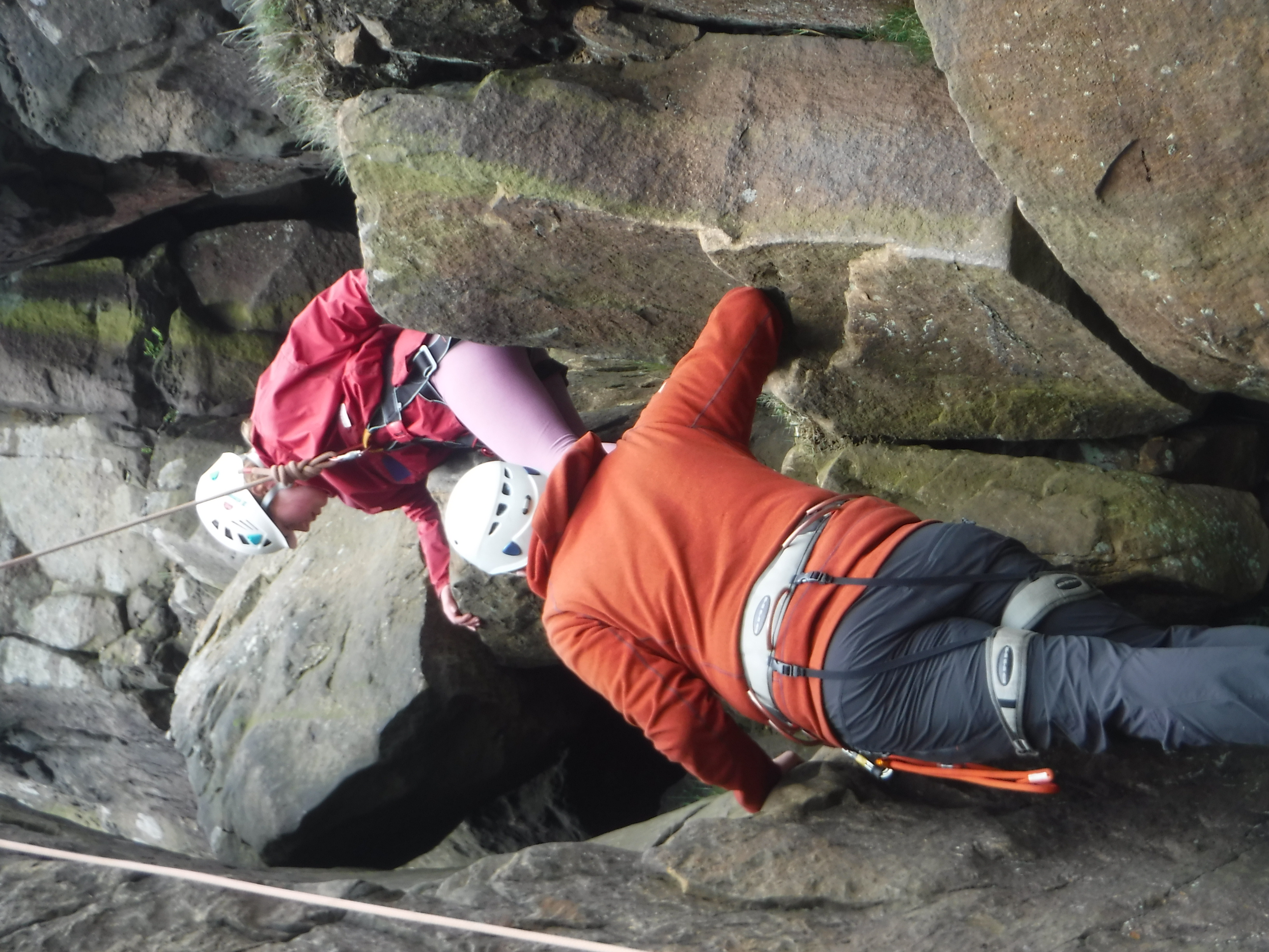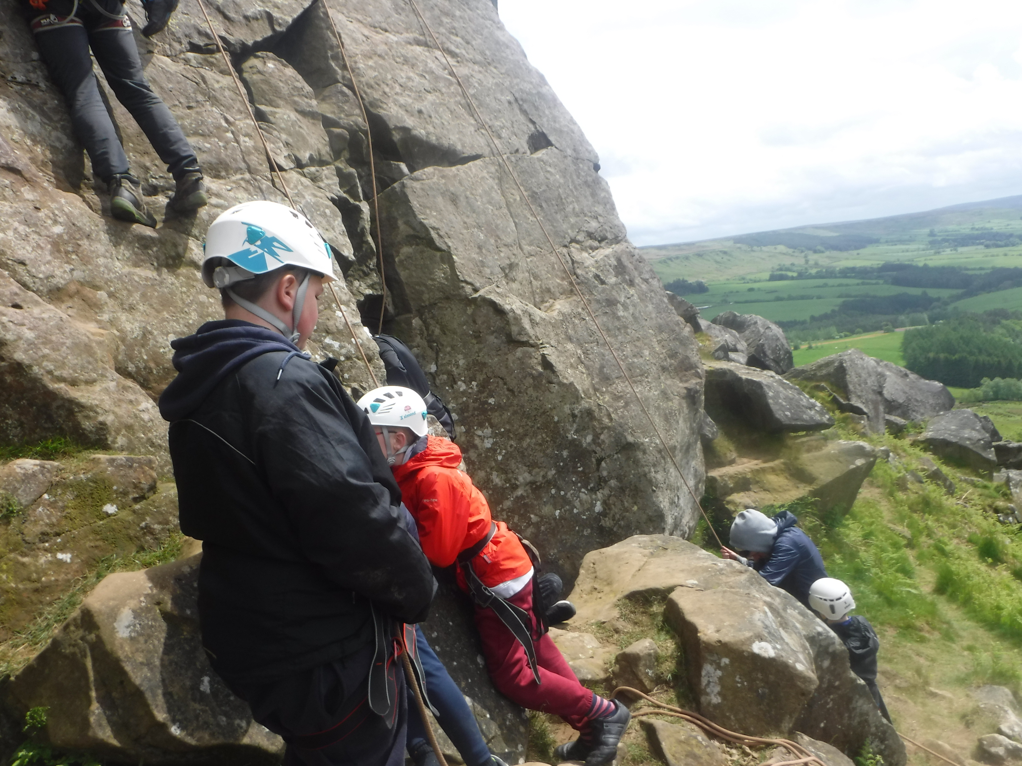 The groups who went for a full day of climbing first had a strenuous walk from their minibuses to the crags and then a scrambling session to warm up. After a picnic dinner, the top ropes were made ready and the brave and the bold made their attempts to scale the rock. So many achieved much more than they thought was possible.