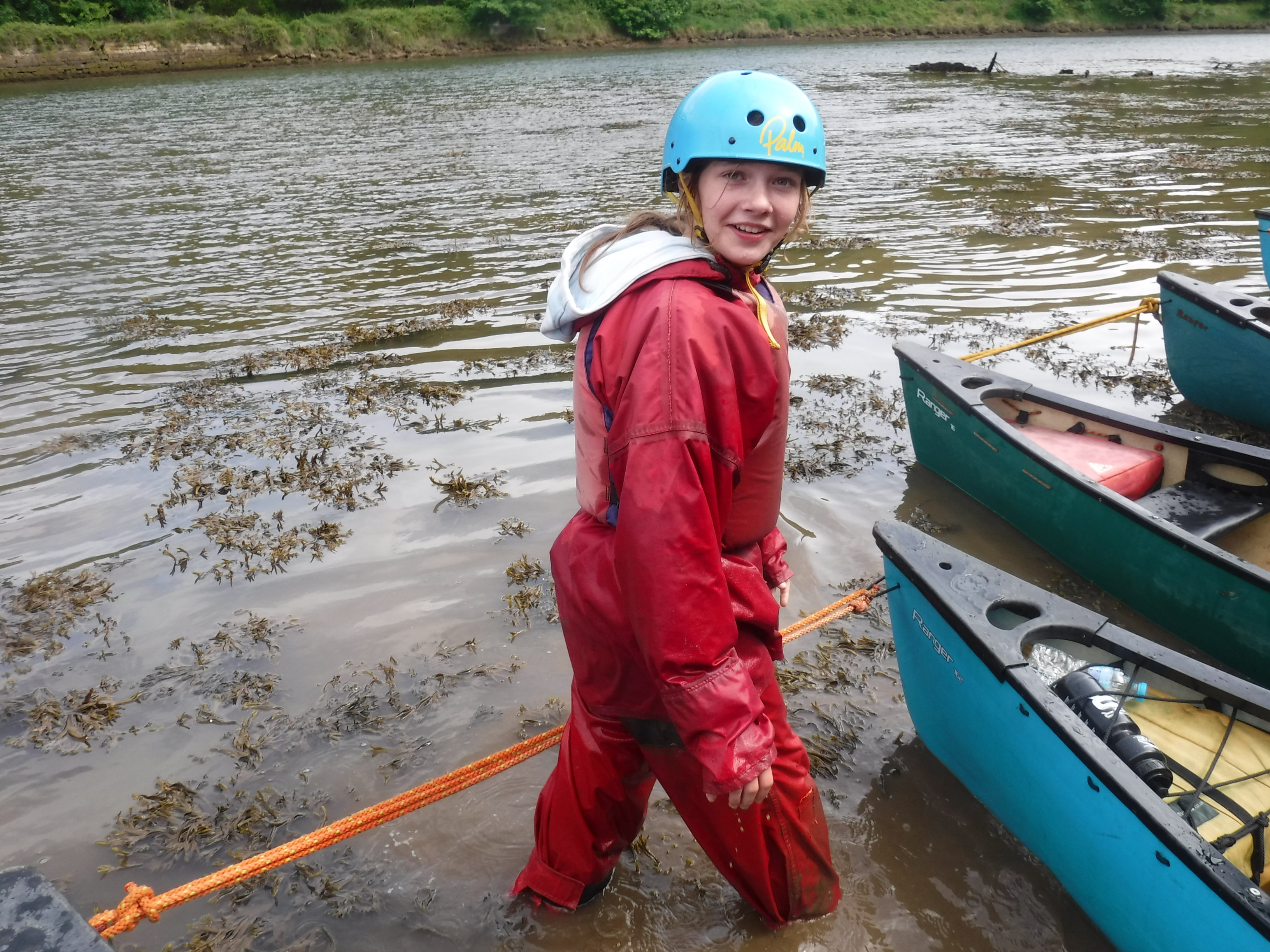 Also on a full day adventure, our canoeists prepared their boats and practised the new skills they'd need. Then they dragged the boats into the Esk and clambered on board. First some control drills and games, then a long leisurely paddle down to the harbour in Whitby. Maybe shooting the weir wasn't leisurely, but it was exciting.