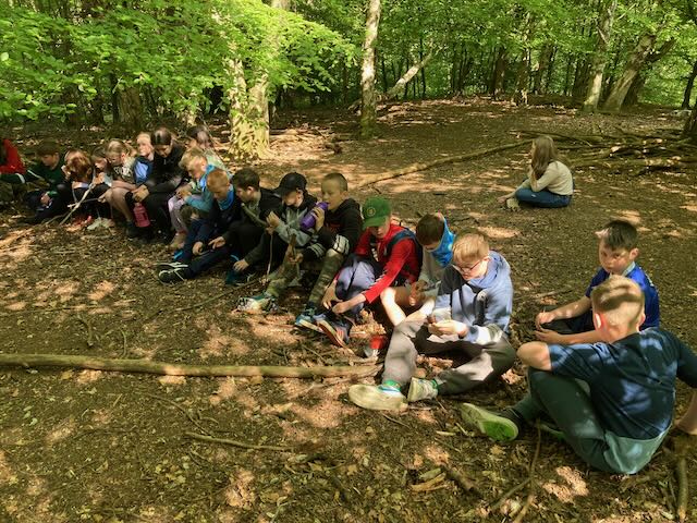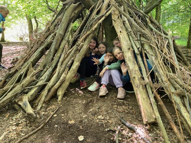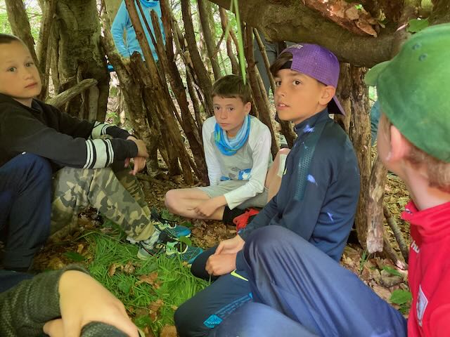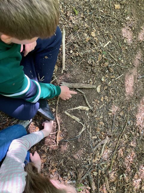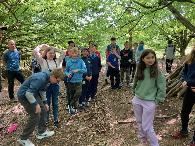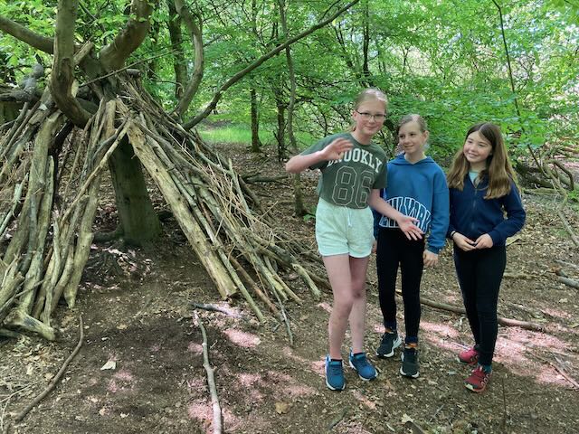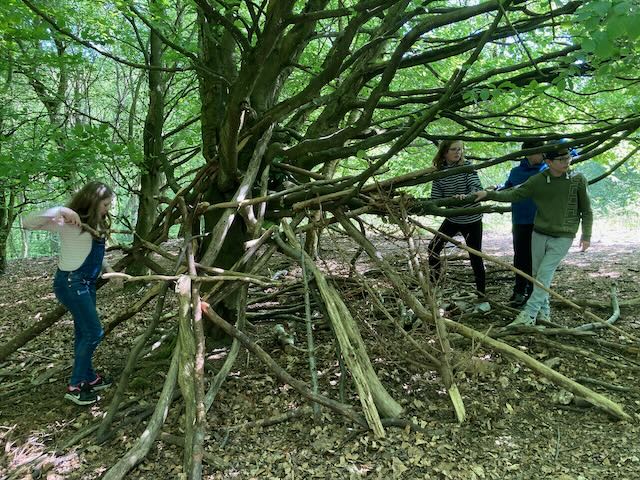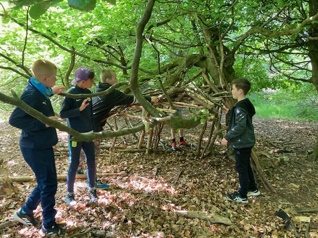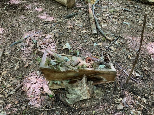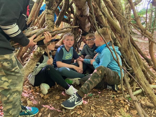 We had a go at shelter building. Each group made a shelter and then presented it to everyone. This involved pointing out all the great features and setting a price in woodland currency (leaves, pine cones, etc.).