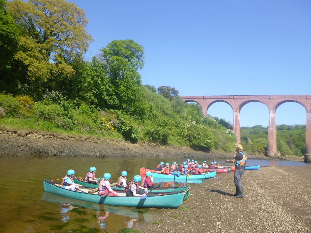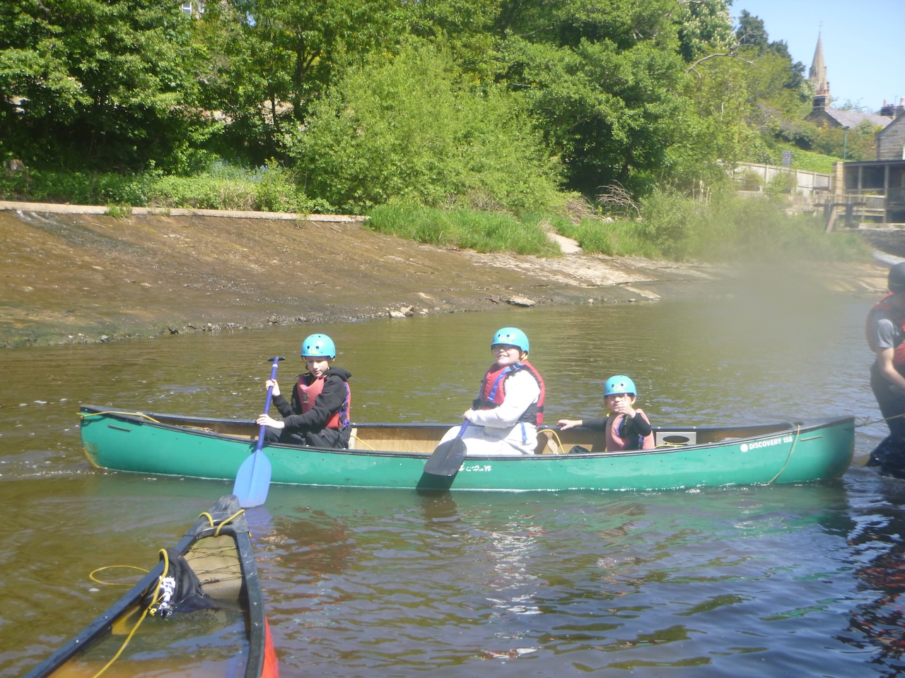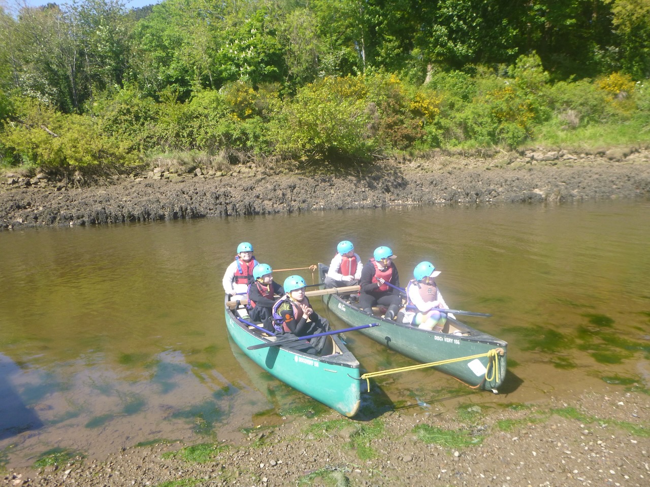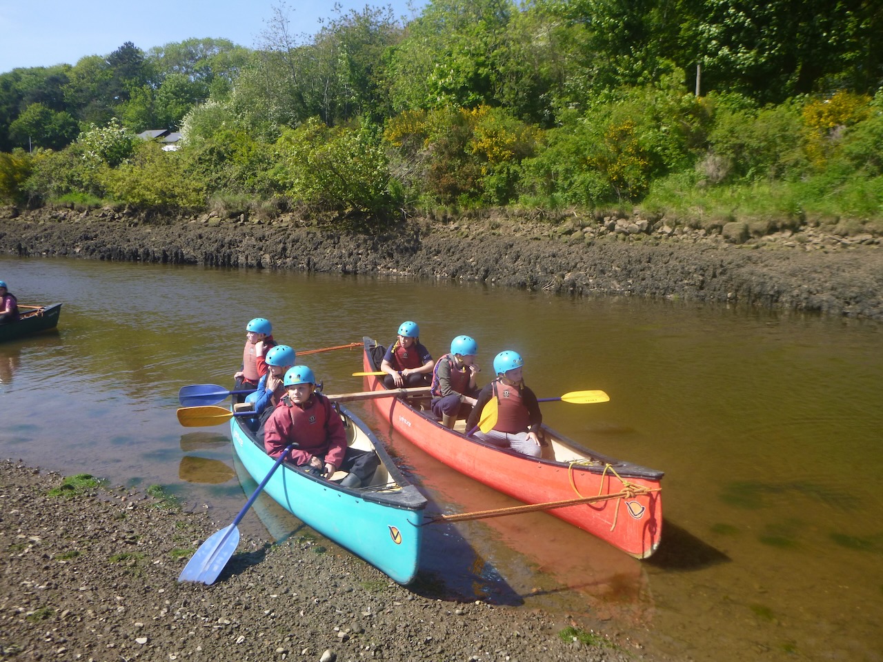 The first job facing our canoeists, on arrival at the river Esk, was to unload the long canoes from their trailers. Next, it was time to learn some paddling techniques on dry land before taking to the river.