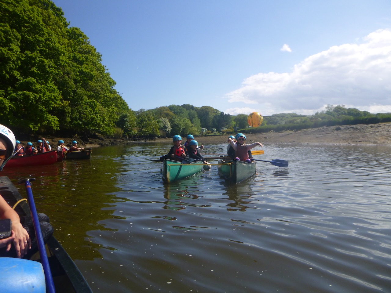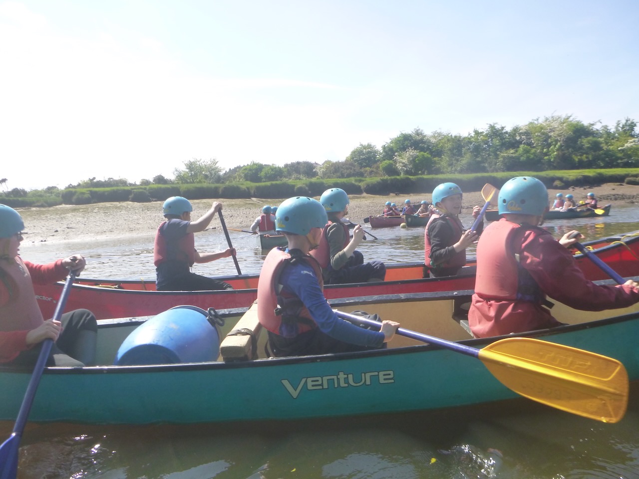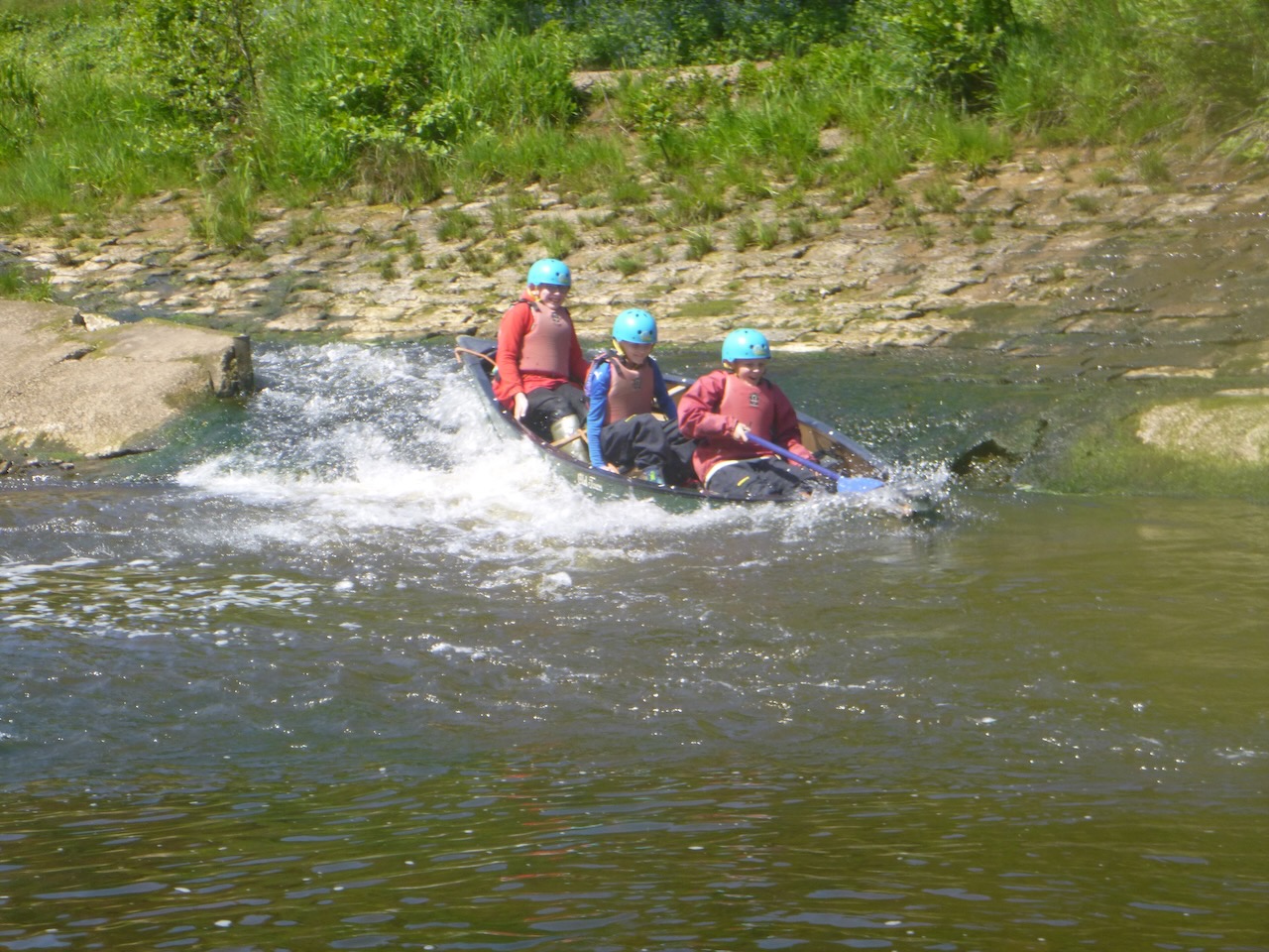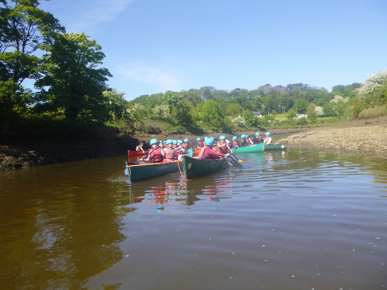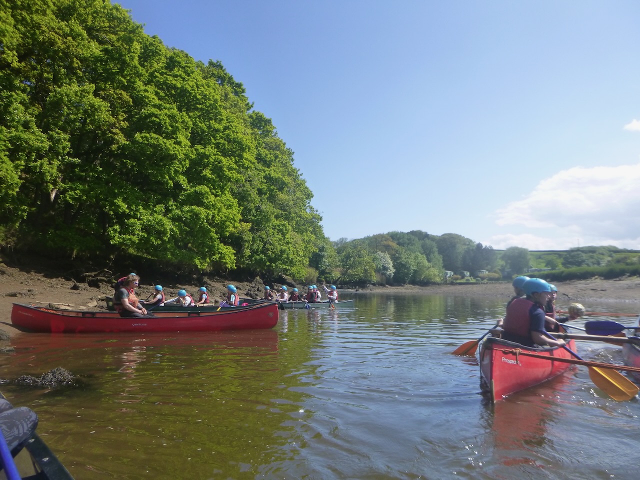The first job facing our canoeists, on arrival at the river Esk, was to unload the long canoes from their trailers. Next, it was time to learn some paddling techniques on dry land before taking to the river.
