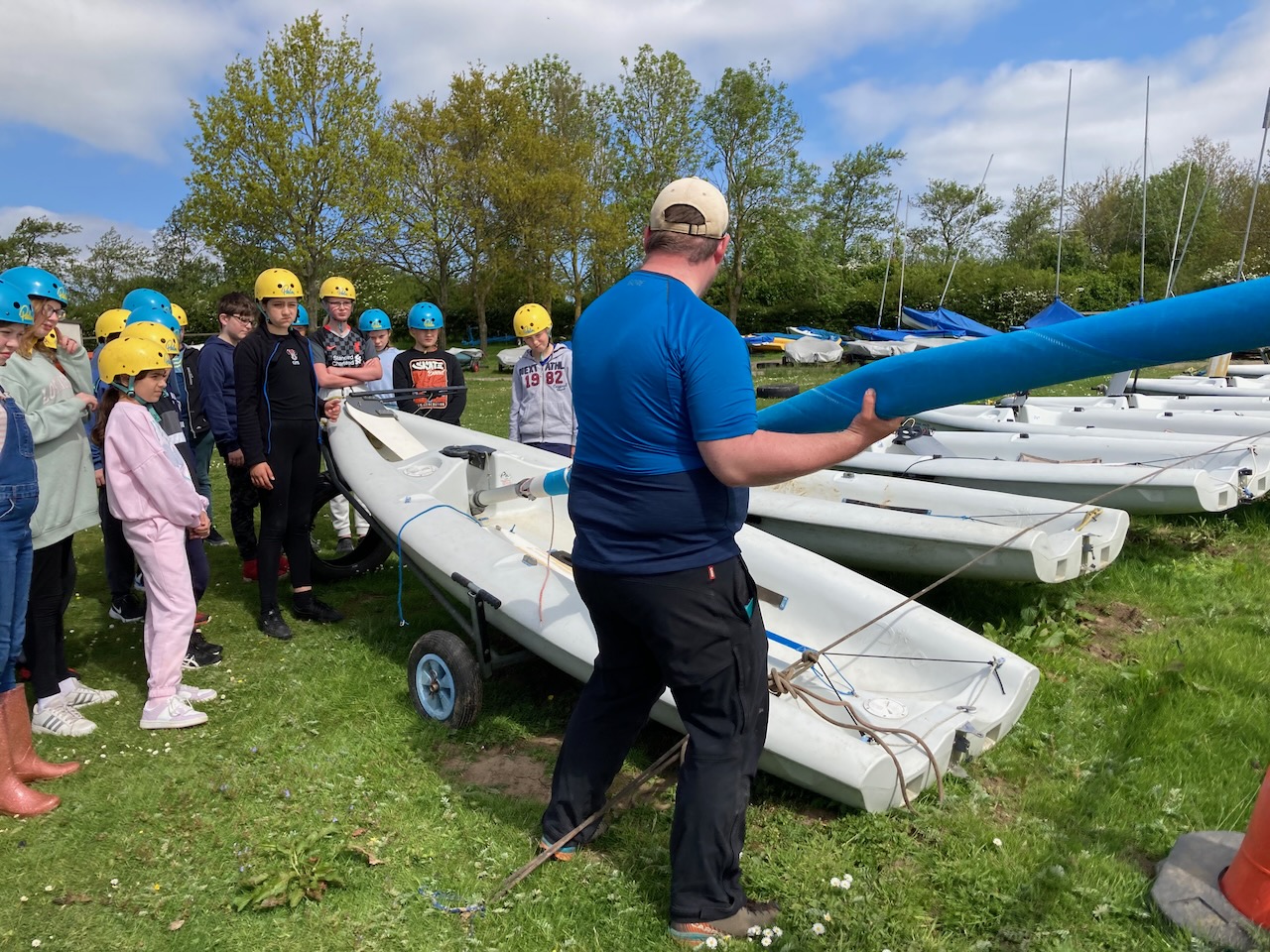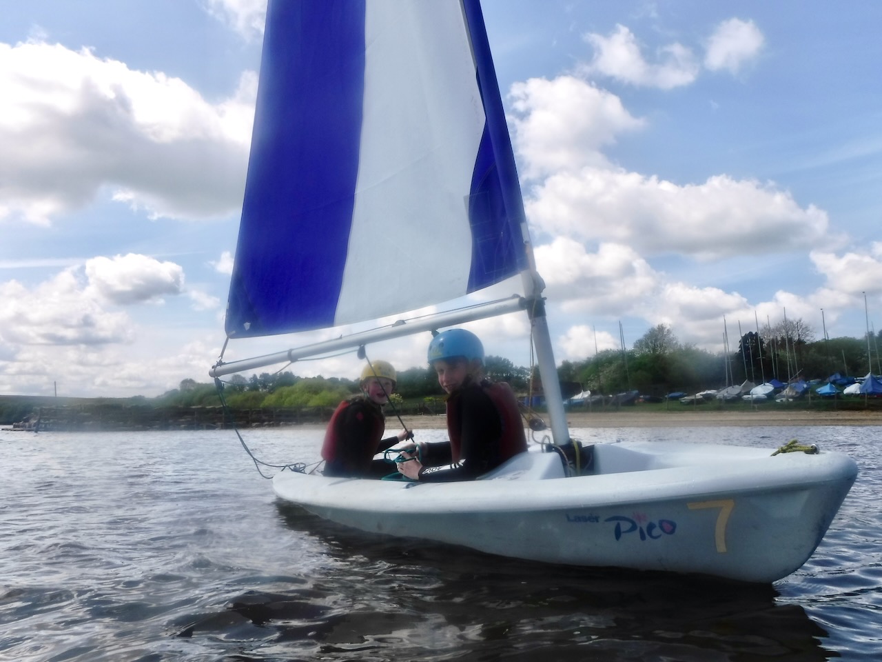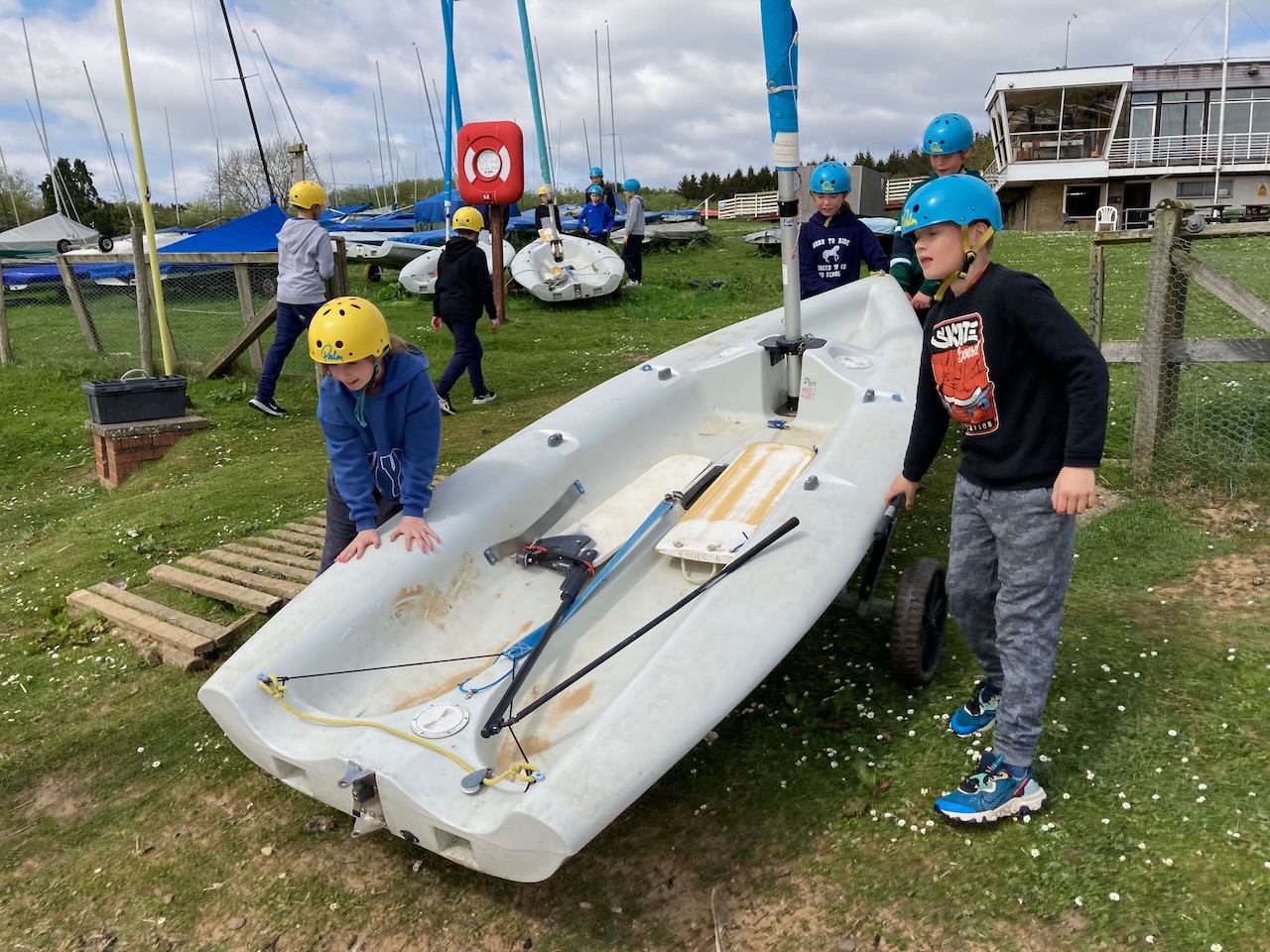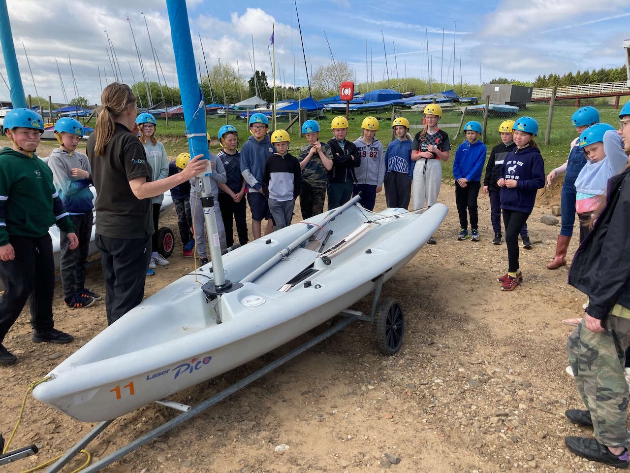 A short minibus trip took us to Scaling Dam Reservoir and the sailing club where East Barnby keep their Laser Pico sailing boats. We had to set them up with daggerboards, rudders, booms and masts. Luckily, the masts already had the sails on ready to unfurl.