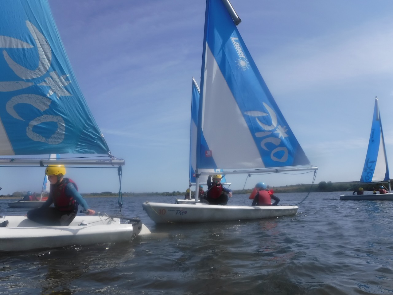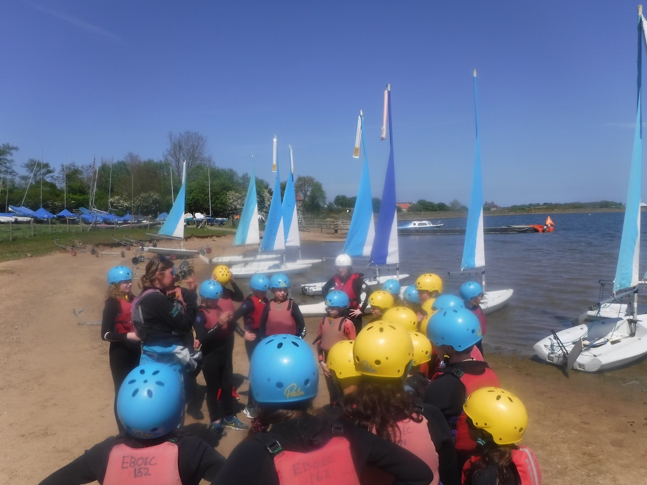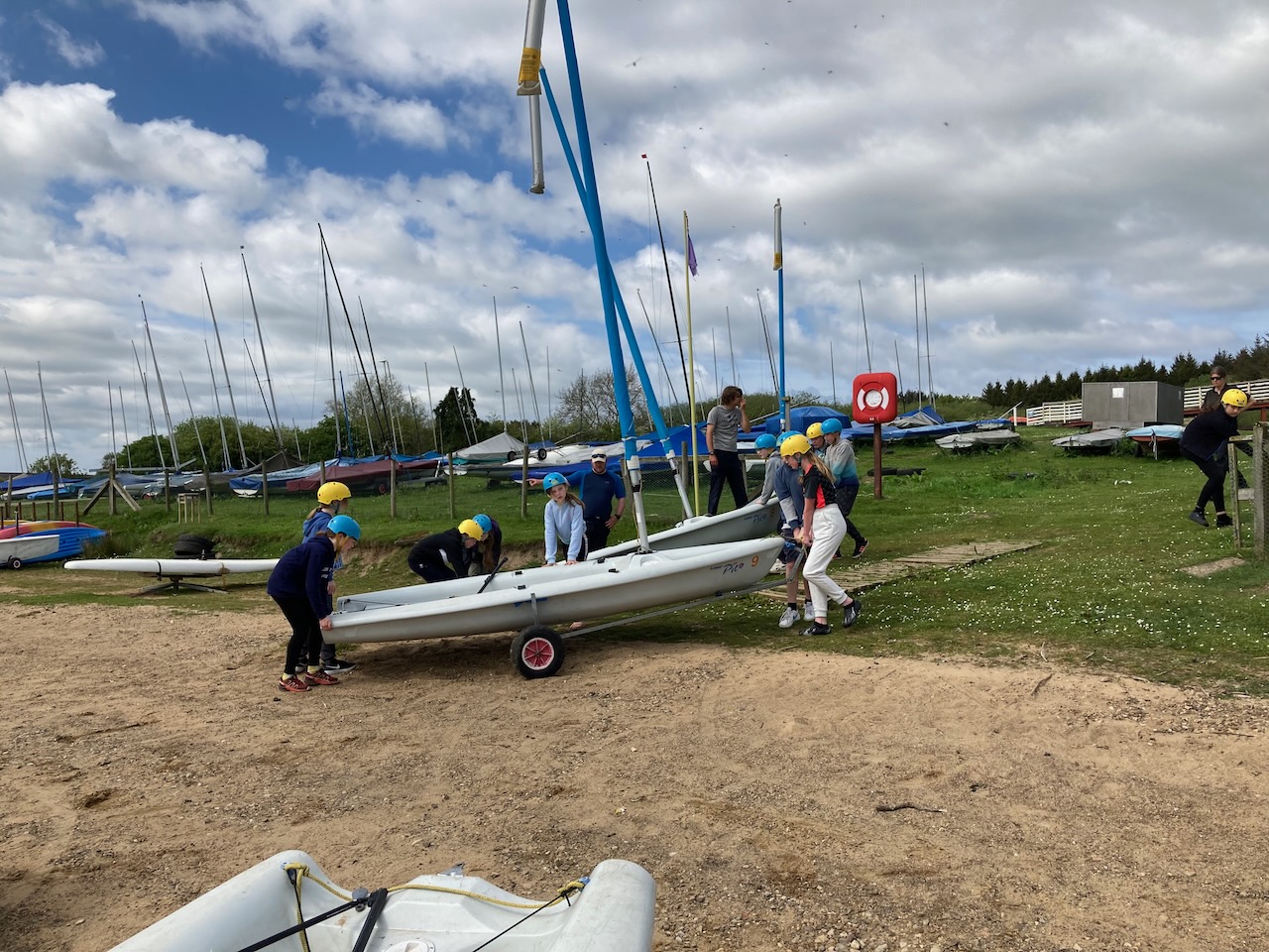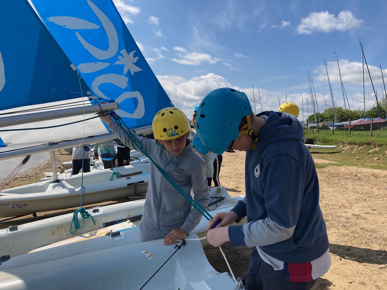 A short minibus trip took us to Scaling Dam Reservoir and the sailing club where East Barnby keep their Laser Pico sailing boats. We had to set them up with daggerboards, rudders, booms and masts. Luckily, the masts already had the sails on ready to unfurl.