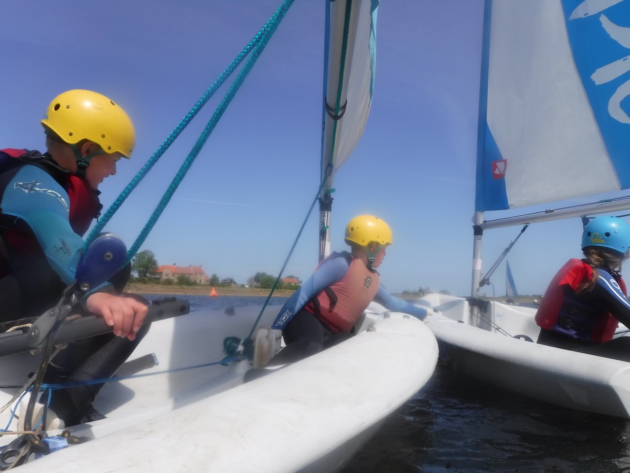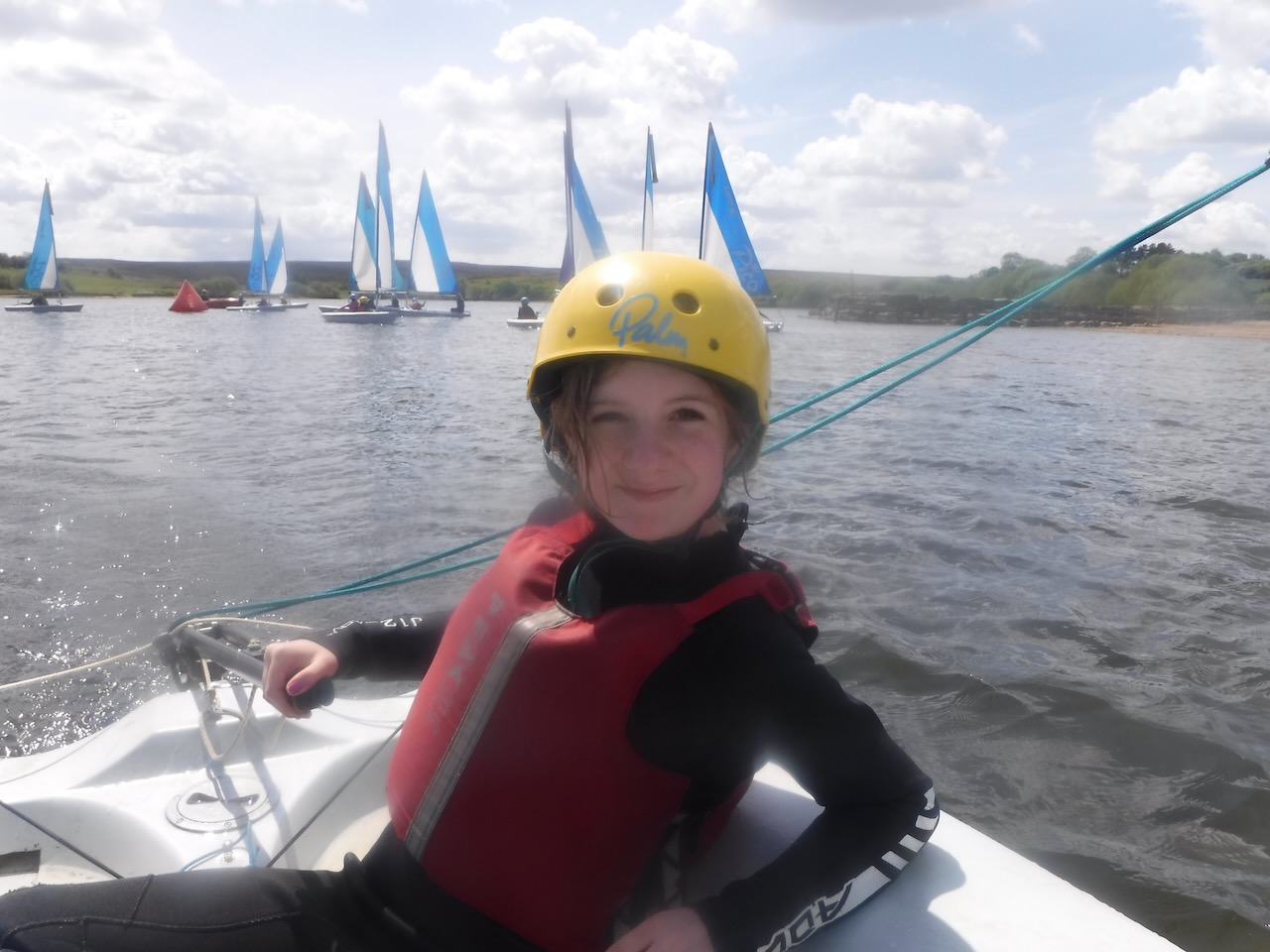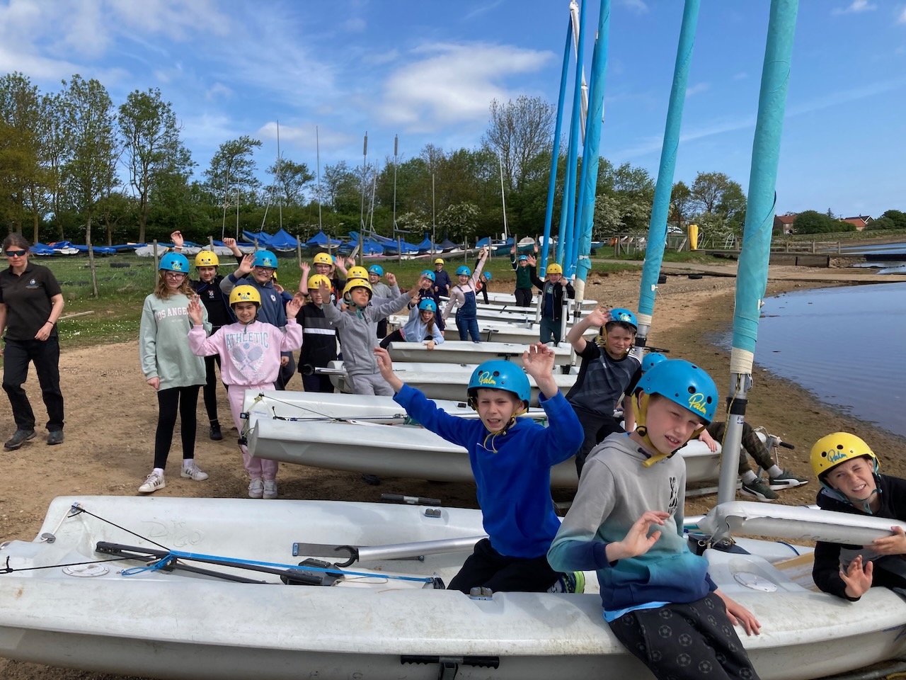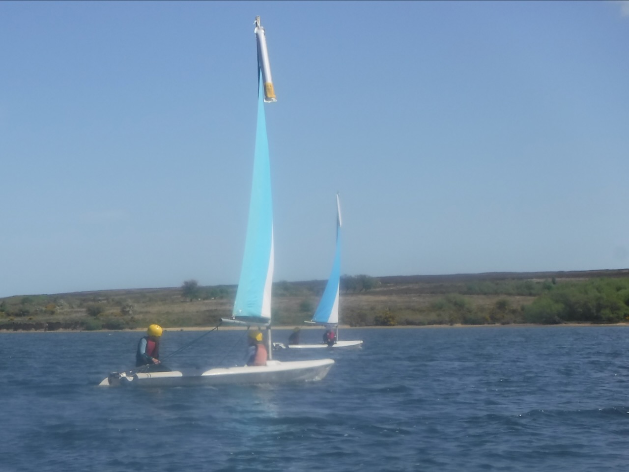 A short minibus trip took us to Scaling Dam Reservoir and the sailing club where East Barnby keep their Laser Pico sailing boats. We had to set them up with daggerboards, rudders, booms and masts. Luckily, the masts already had the sails on ready to unfurl.