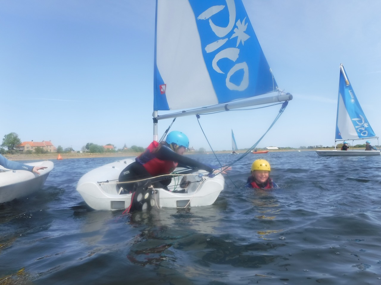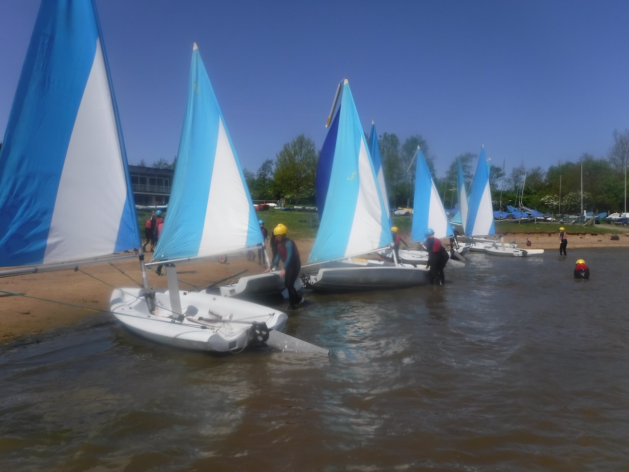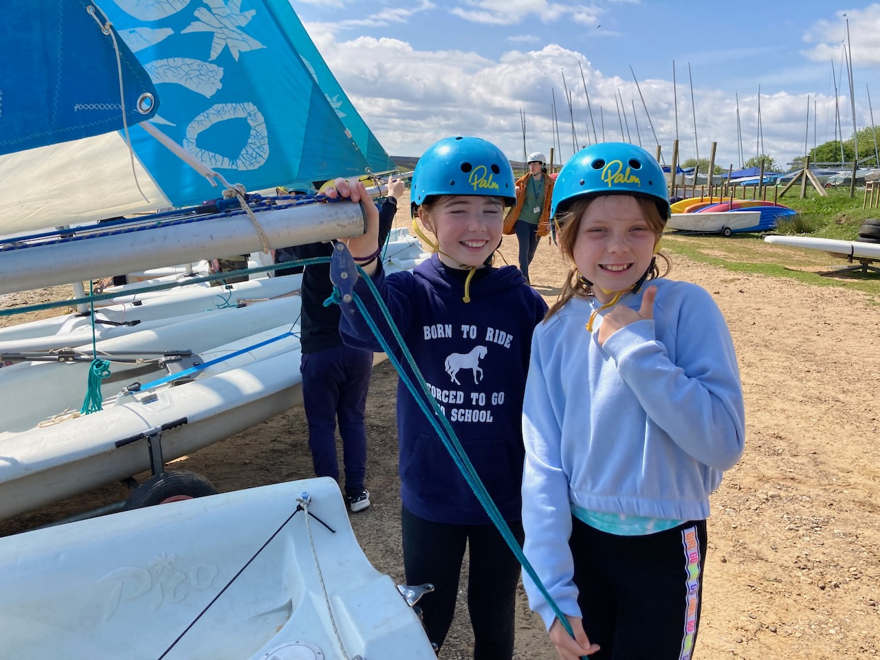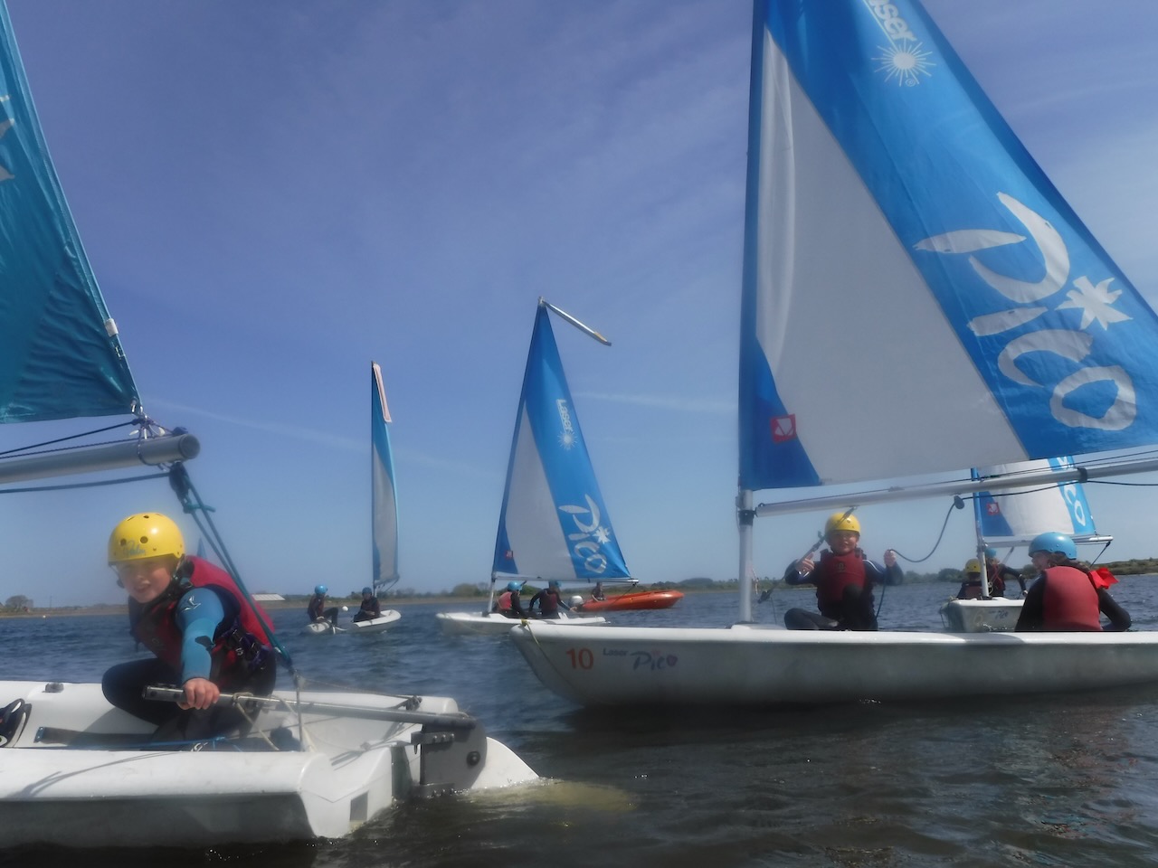 A short minibus trip took us to Scaling Dam Reservoir and the sailing club where East Barnby keep their Laser Pico sailing boats. We had to set them up with daggerboards, rudders, booms and masts. Luckily, the masts already had the sails on ready to unfurl.