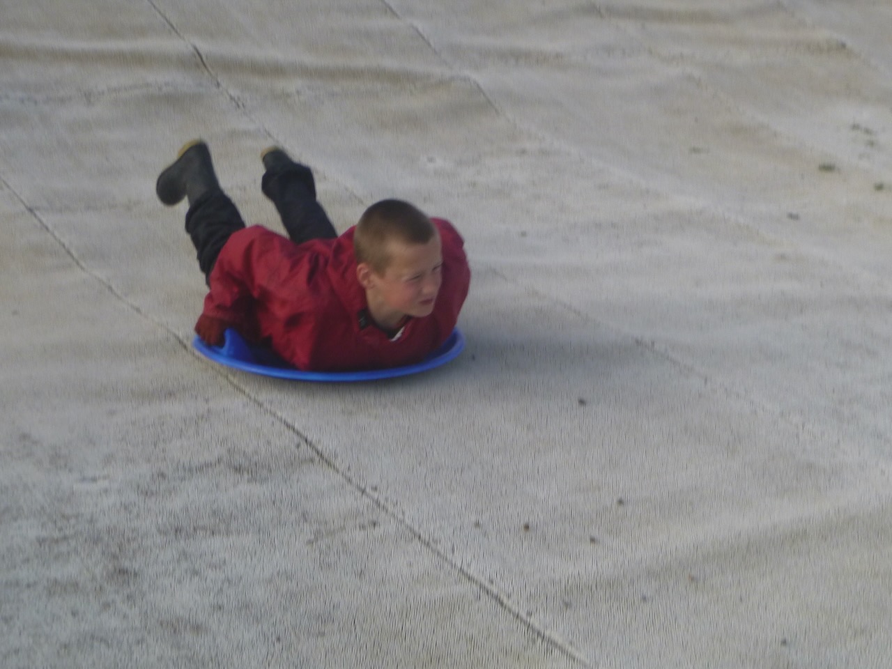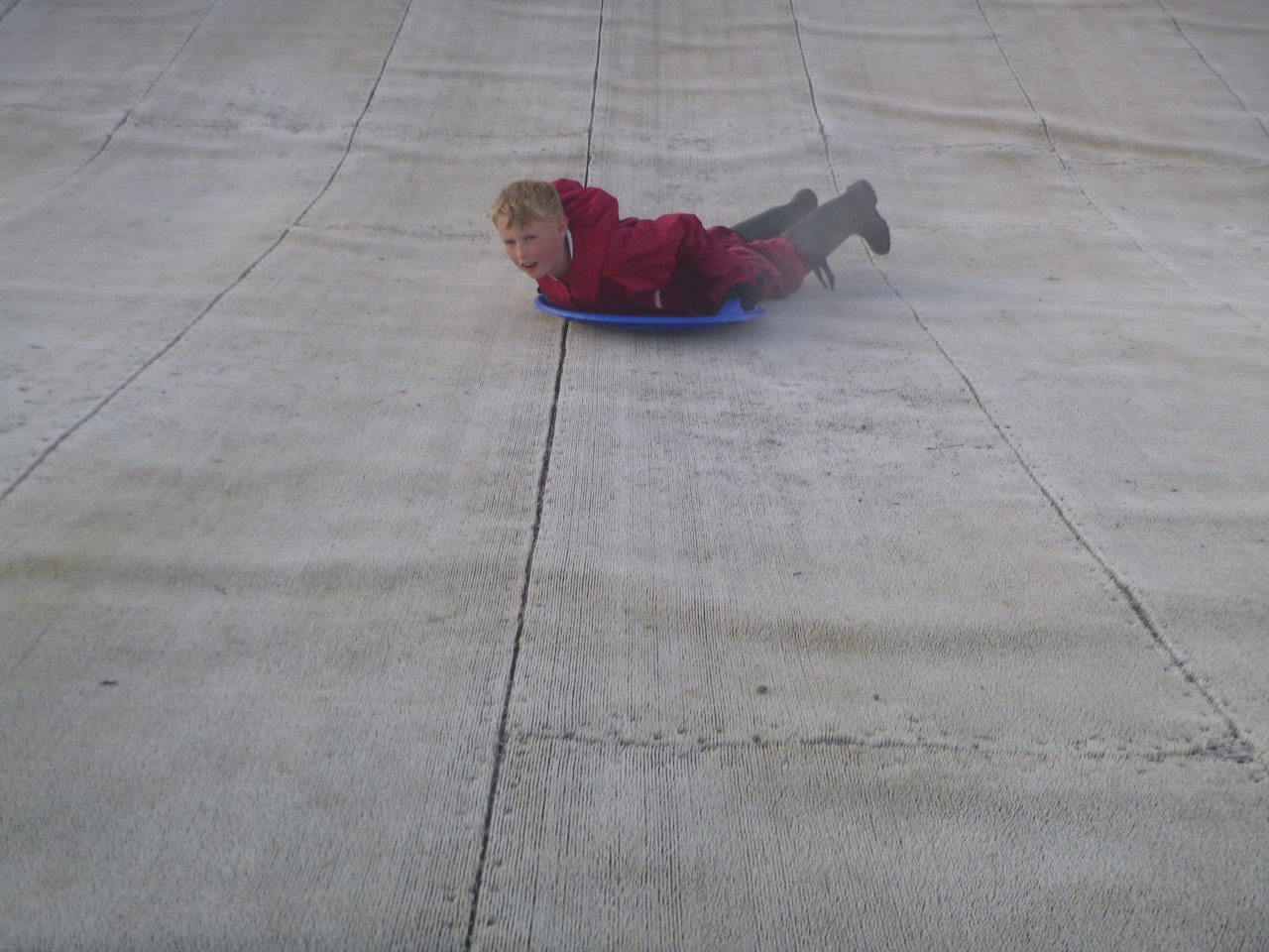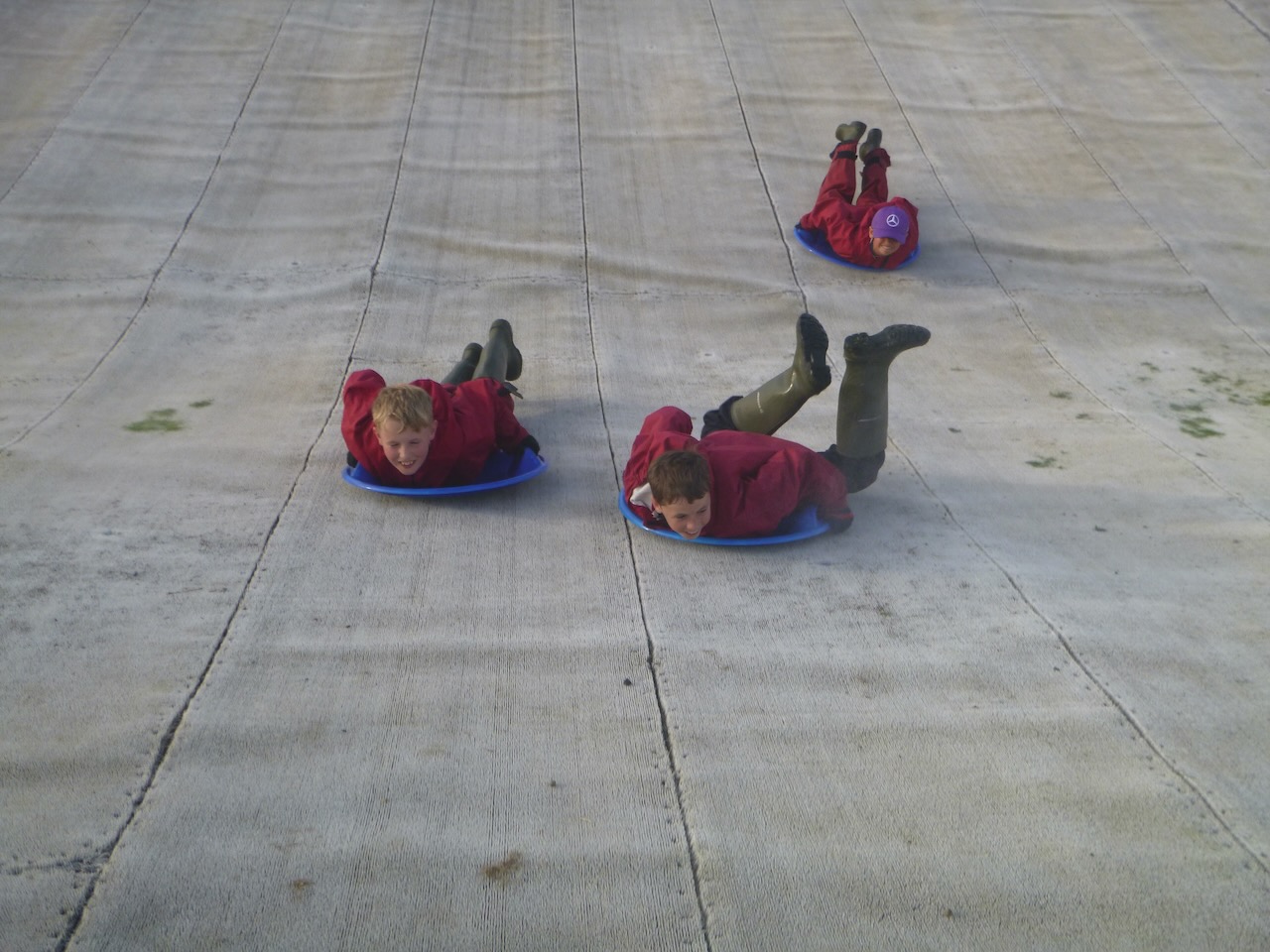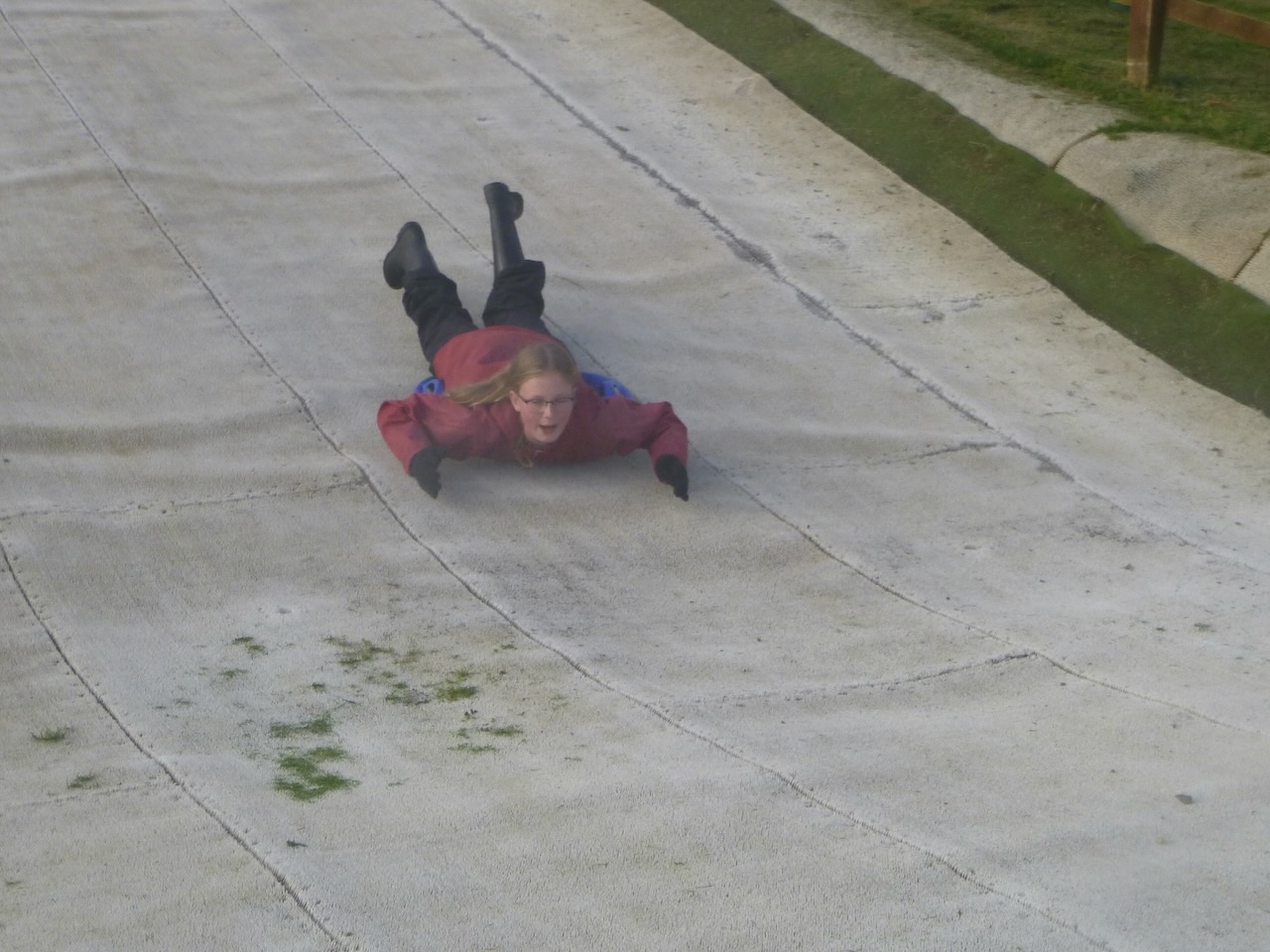 Suitably refreshed, we began our evening activities. Everyone had a go at shooting down the dry ski slope on little saucer shaped sledges. The funny thing about a dry ski slope is that they aren't dry! Lots of little nozzles, space out all over, constantly sprayed water onto the surface, reducing friction.