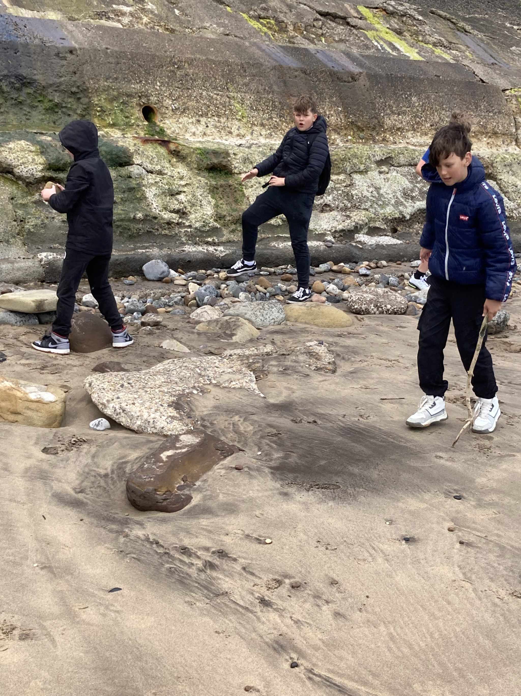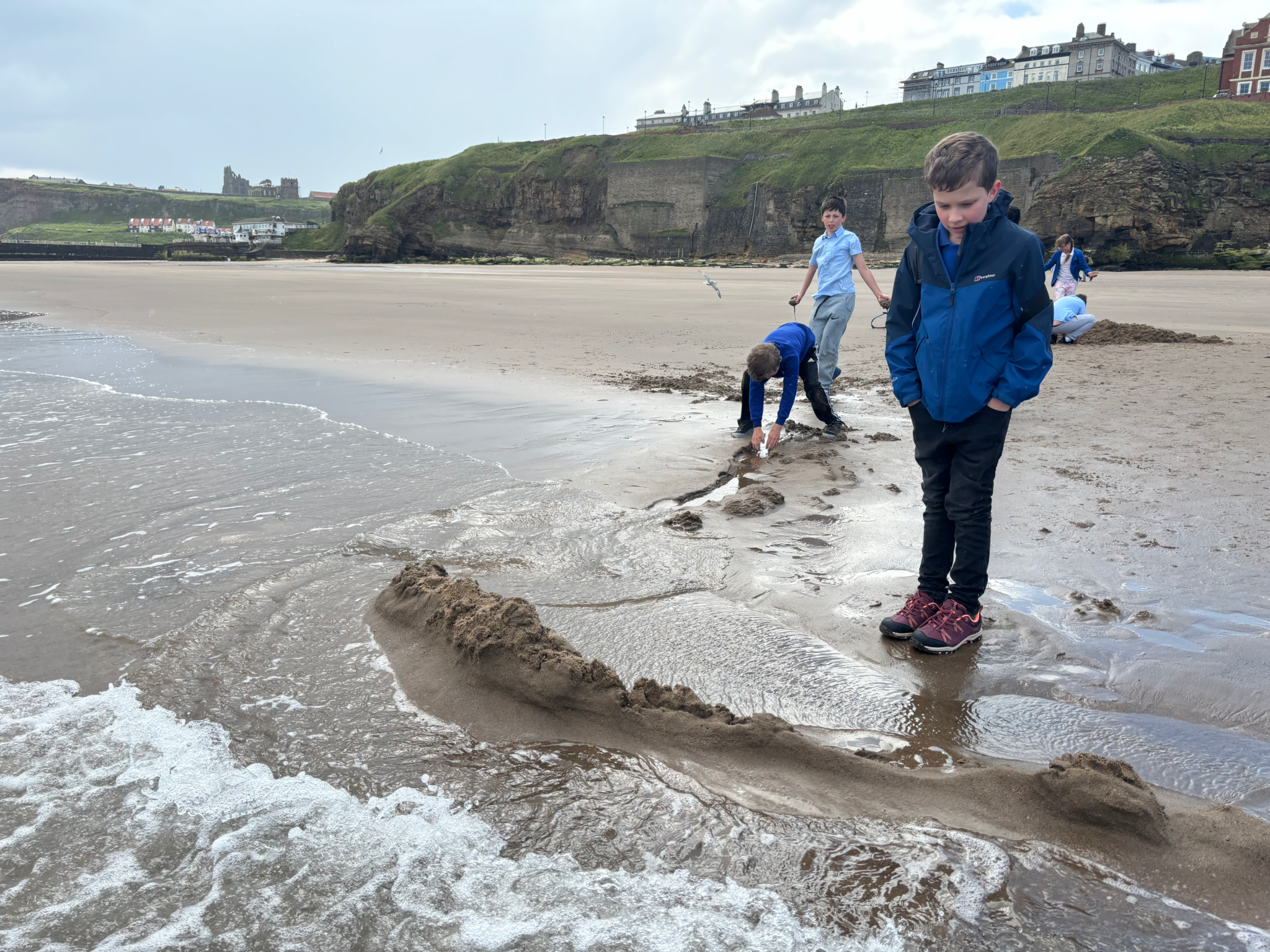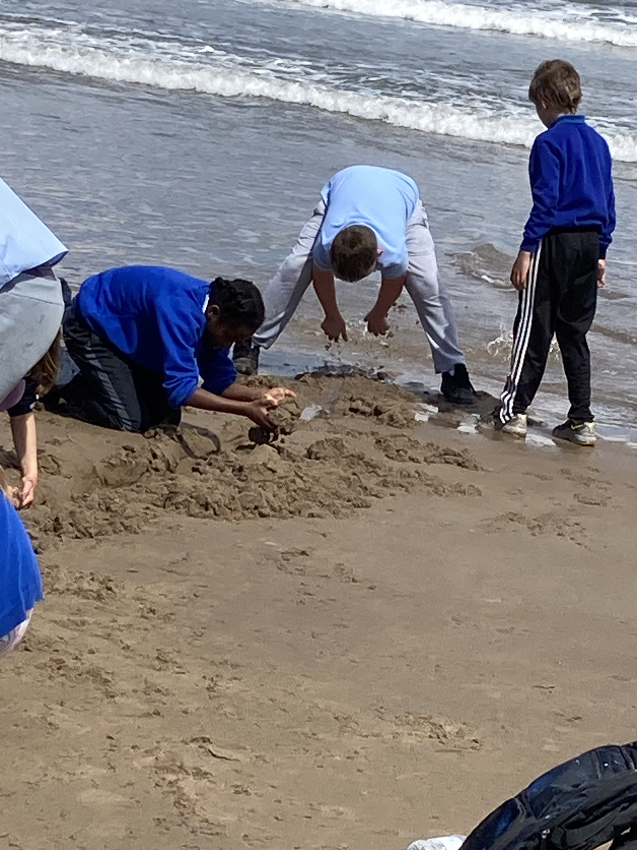 On the beach, looking for pretty stones, fossils and sea glass was a popular activity. Others tested their skill at building sea defences, noting how their sand sea walls reflected wave energy back to sea (not for long, though). Watch a video of the sand sea wall facing the incoming tide.