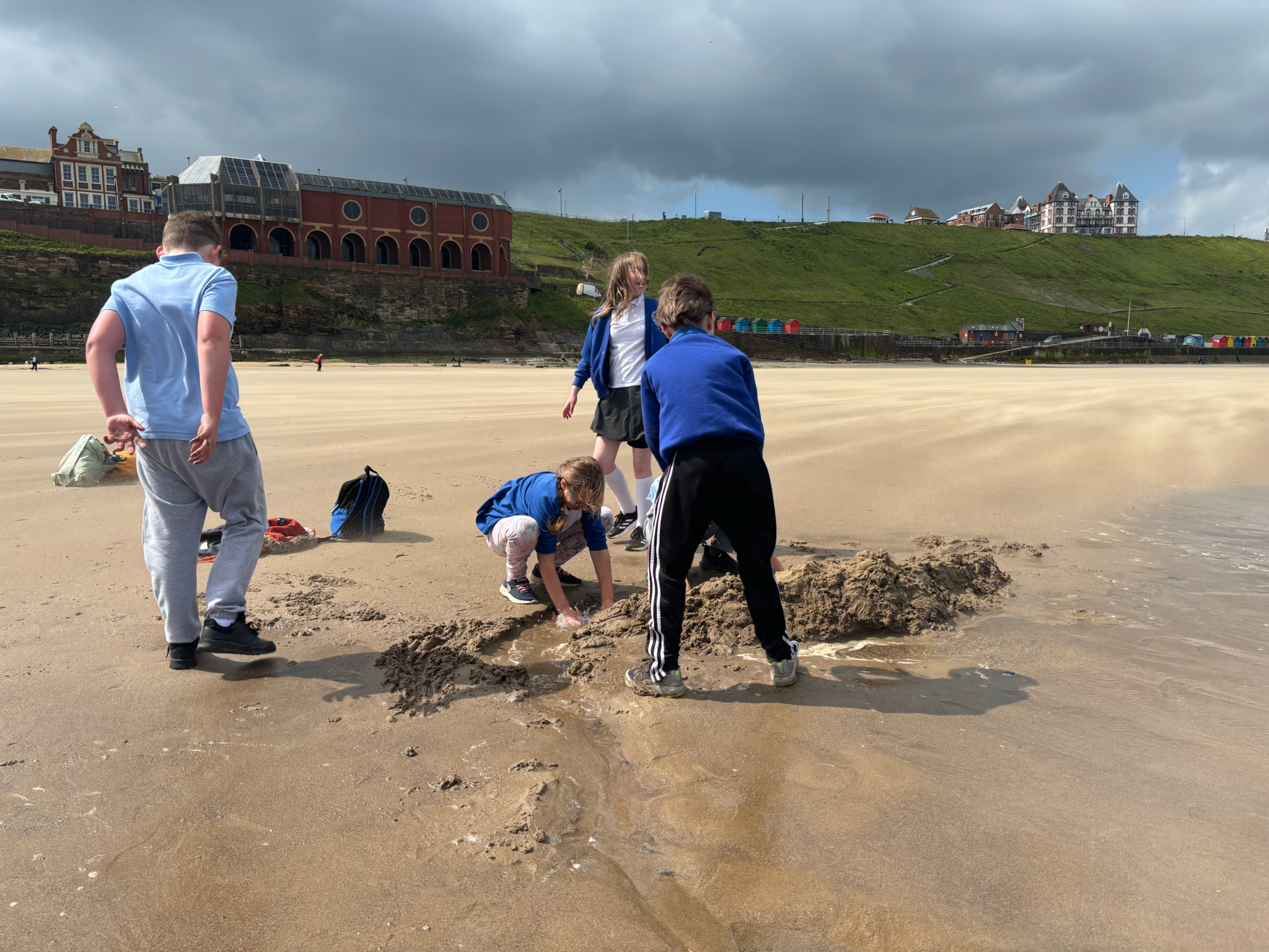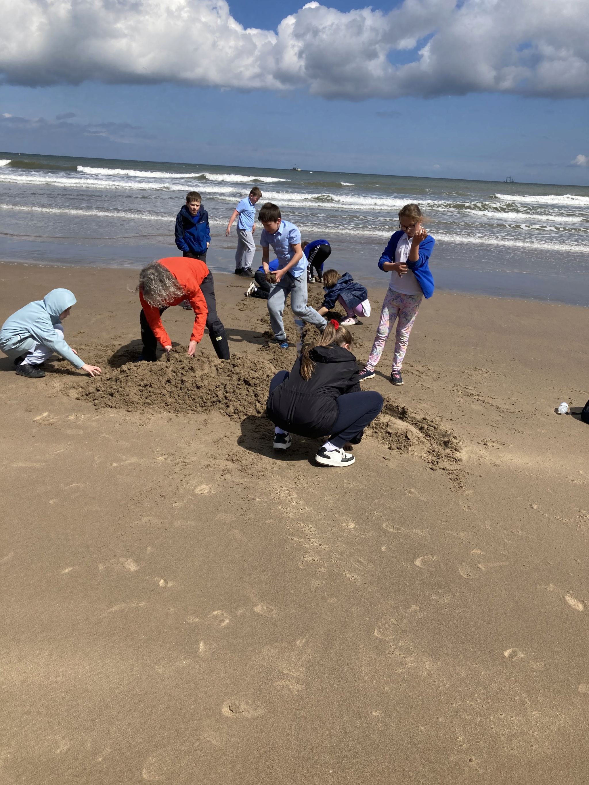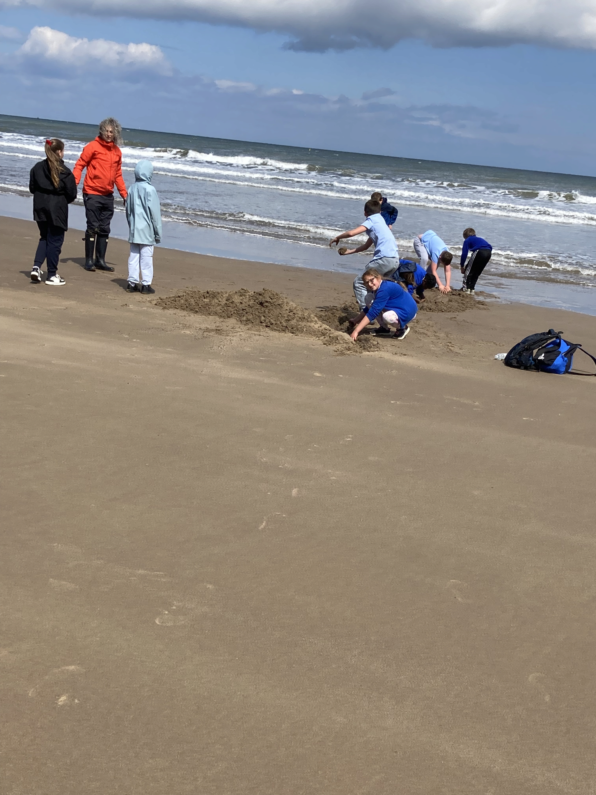 On the beach, looking for pretty stones, fossils and sea glass was a popular activity. Others tested their skill at building sea defences, noting how their sand sea walls reflected wave energy back to sea (not for long, though). Watch a video of the sand sea wall facing the incoming tide.