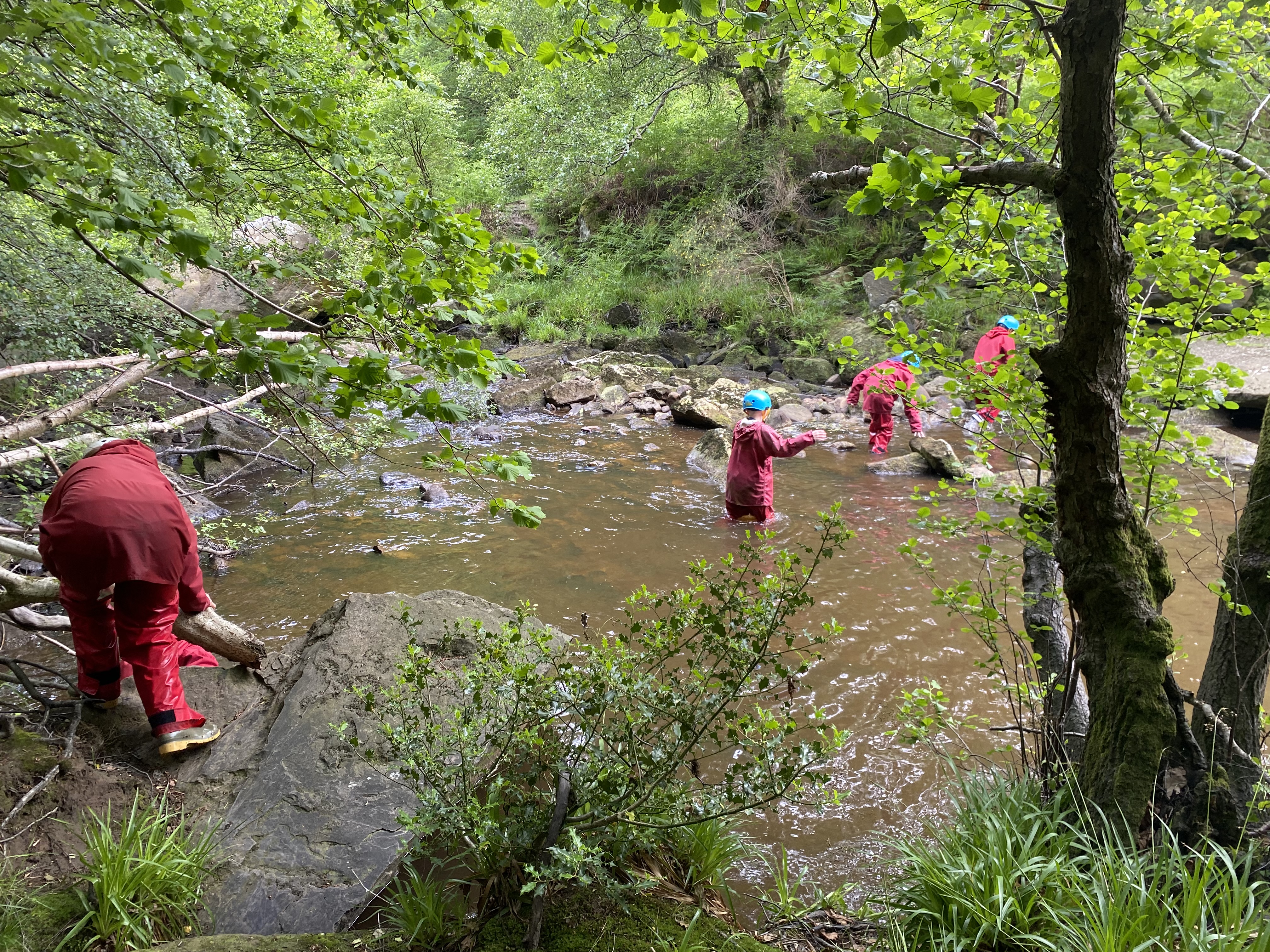 Most groups were in the beck, getting thoroughly wet (and enjoying every minute). The little beck that runs into the River Esk hasn't had much rain to fill it this Spring. Nevertheless, there was plenty of the wet stuff for everyone to get aquainted with.