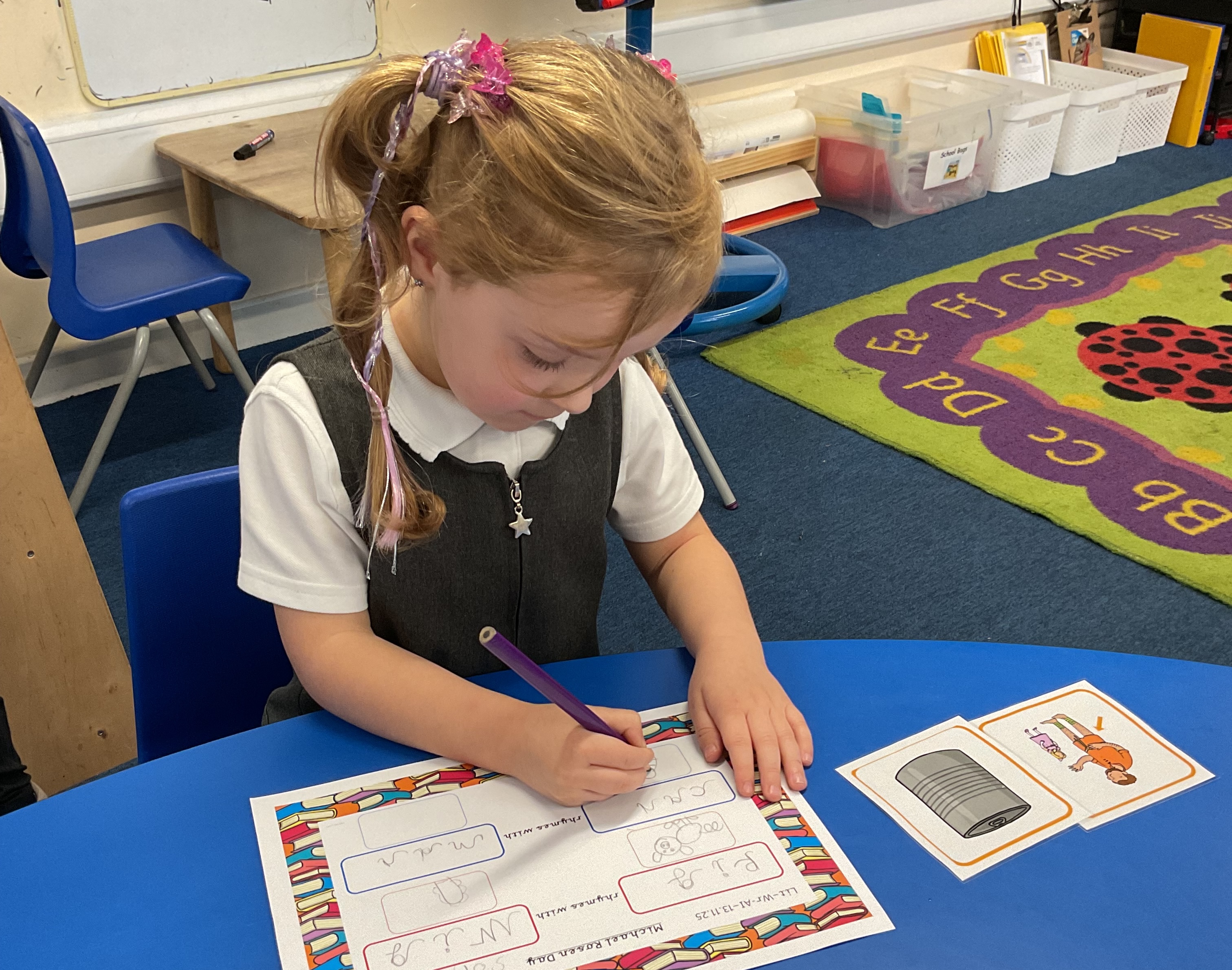 Foundation learned to rhyme and practised handwriting their rhyming words.