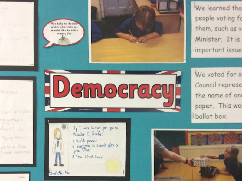 Following whole school Collective Worship, pupils are encouraged to report on political news, investigate local politics, research and take part in class elections when relevant votes are taking place in the news and write to local or country wide politicians to raise issues they deem important.
